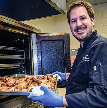 Since 1985, the Marian House Kitchen has been serving people who are hungry in downtown Colorado Springs. The Marian House Kitchen offers hot, nutritious meals 365 days a year to anyone who comes to our doors, free of charge. Meals are nutritionally balanced as we recognize that for many of those we serve, this is their only meal of the day. Meals usually consist of an entree, sides, salads, bread, and dessert. Coffee, water, and milk – if available, are offered as well.